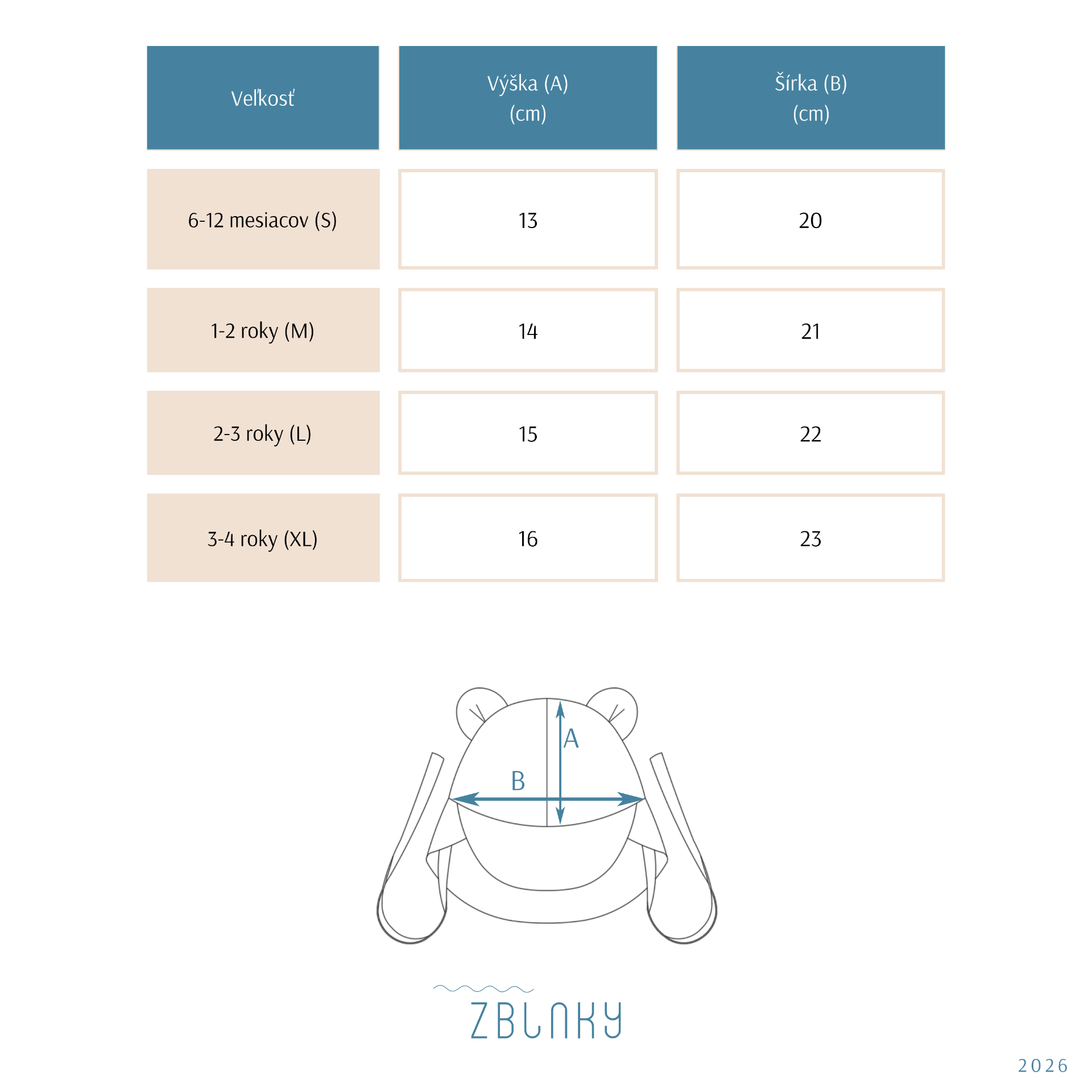 Odporúčame zvoliť veľkosť o 1 číslo väčšiu, ako Vaše dieťatko bežne nosí (príklad: ak nosí veľkosť 86/92 (1-2 roky), odporúčame zakúpiť našu veľkosť L (2-3 roky)).