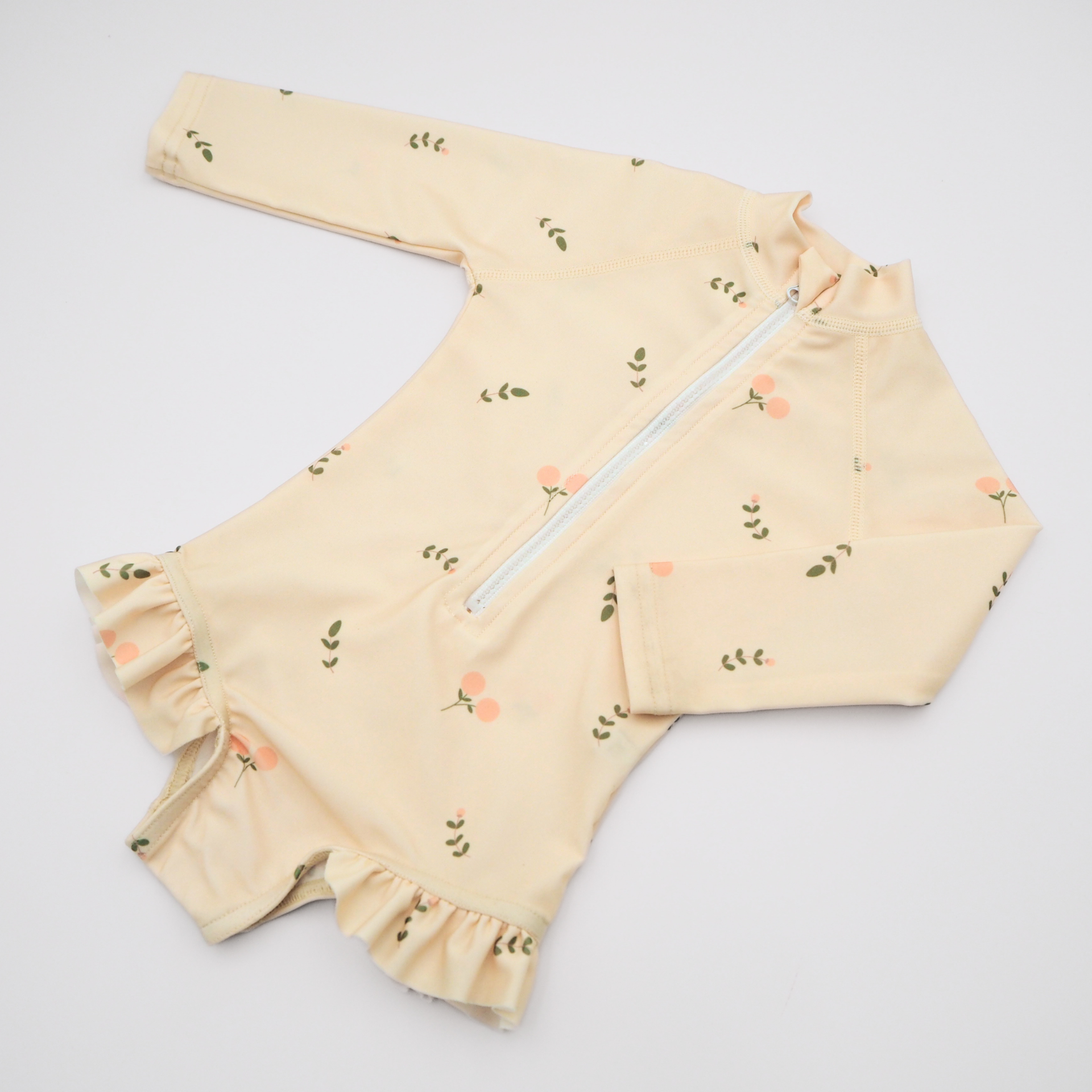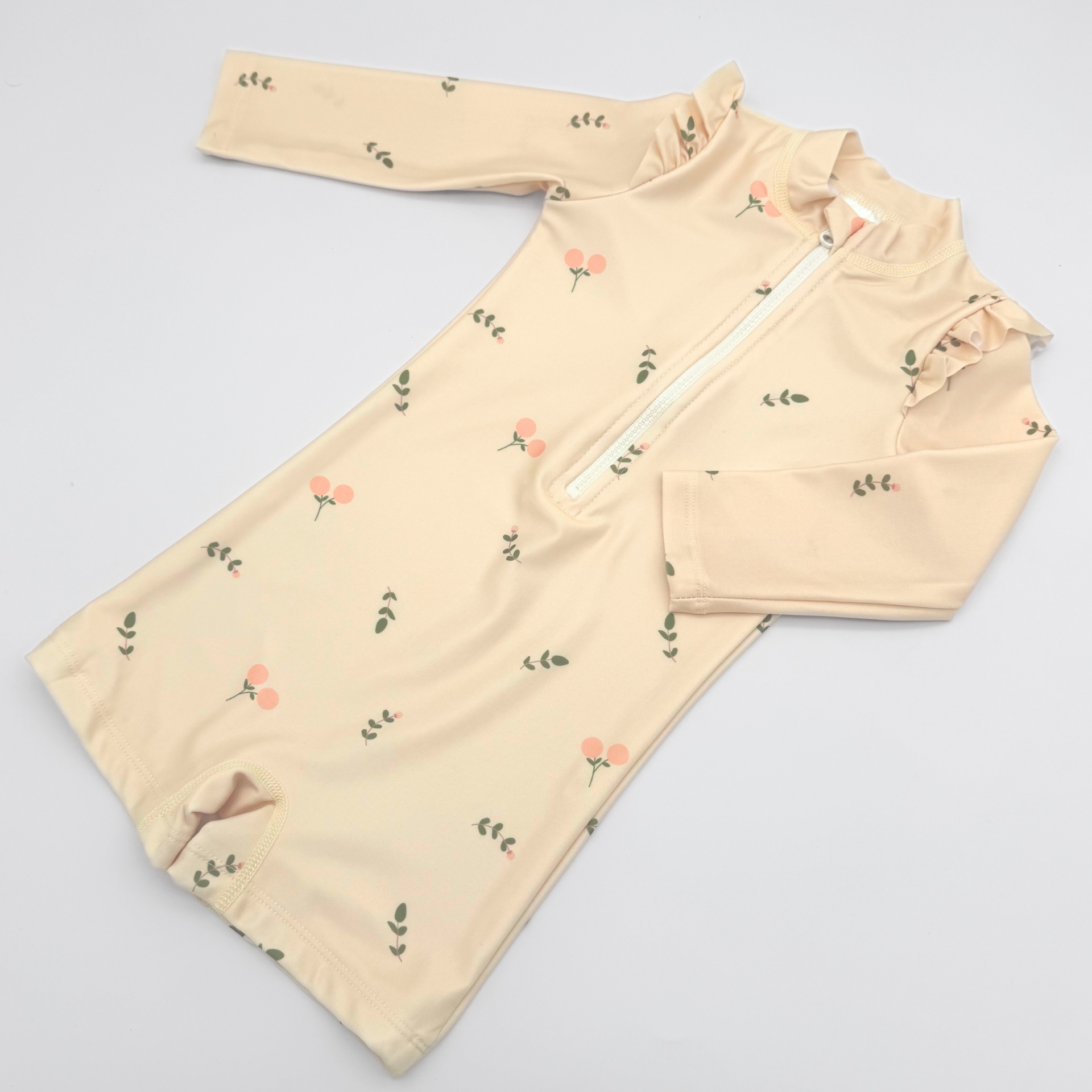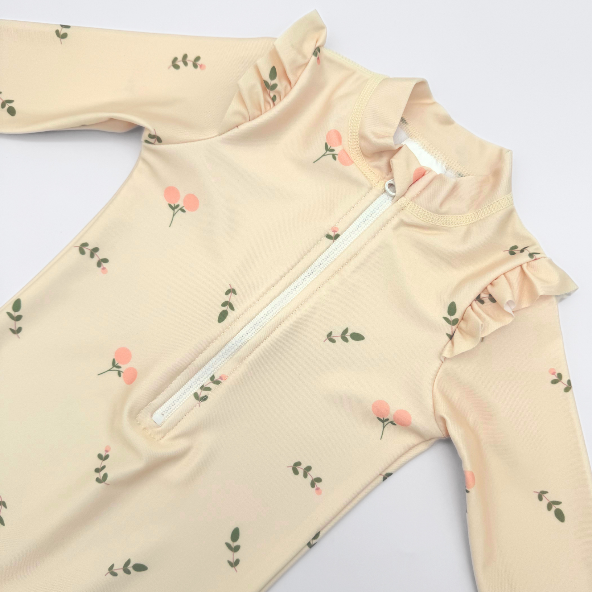 Detský plavkový overal s dlhým rukávom a SPF 50+ poskytuje dokonalú ochranu pred slnečným žiarením, vďaka čomu si vaše dieťatko môže celý deň užívať kúpanie v bazéne, či šantenie vo vlnách alebo hry na pláži. Chráni citlivú detskú pokožku a zároveň znižuje potrebu častého natierania opaľovacím krémom. Praktický zips na prednej strane umožňuje rýchle a jednoduché obliekanie aj vyzliekanie. Plavky sú podšité. Na ramenách majú štýlové volániky.